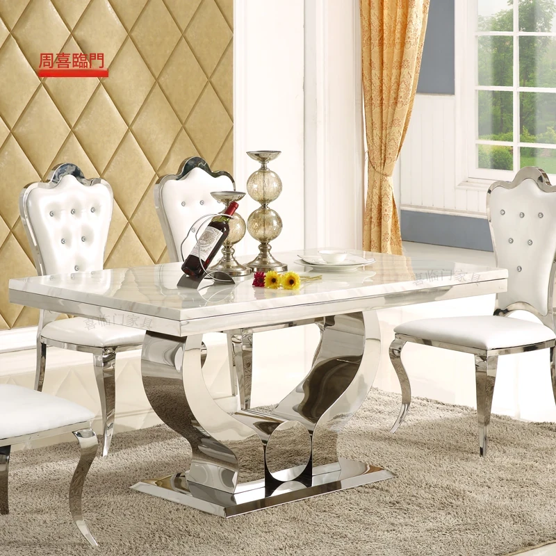 イタリアン・ラグジュアリー現代的シンプルデザイン ステンレス製家庭用大理石ダイニングテーブルセット 長方形のテーブルと椅子のコンビネーションでおしゃれな食卓を演出!