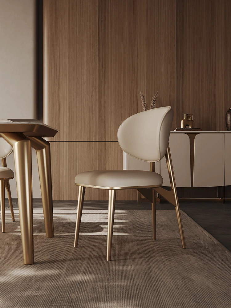 イタリアンミニマリズムデザインの高級ダイニングチェア|家庭用アートアイランドテーブル&椅子|無垢材のデスクとメイクアップスツール|洗練された空間を演出する、スタイリッシュな選択!