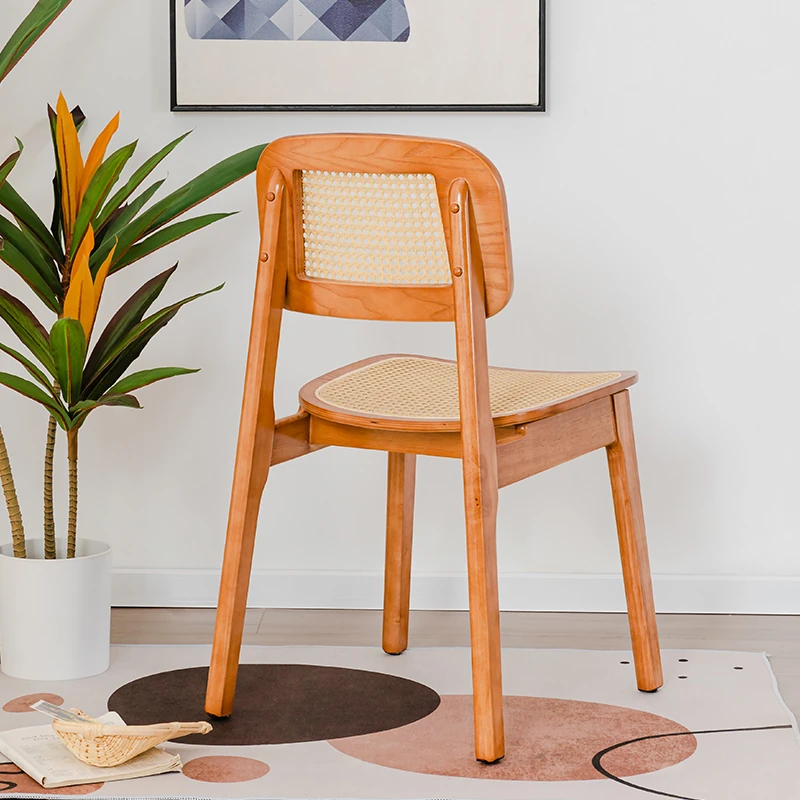 レトロクリーム風のラタン編みダイニングチェア|小型住宅に最適なフレンチヴィンテージデザイン|カフェにぴったりな背もたれ付きラタンチェアで、優雅なひとときを楽しんでください!