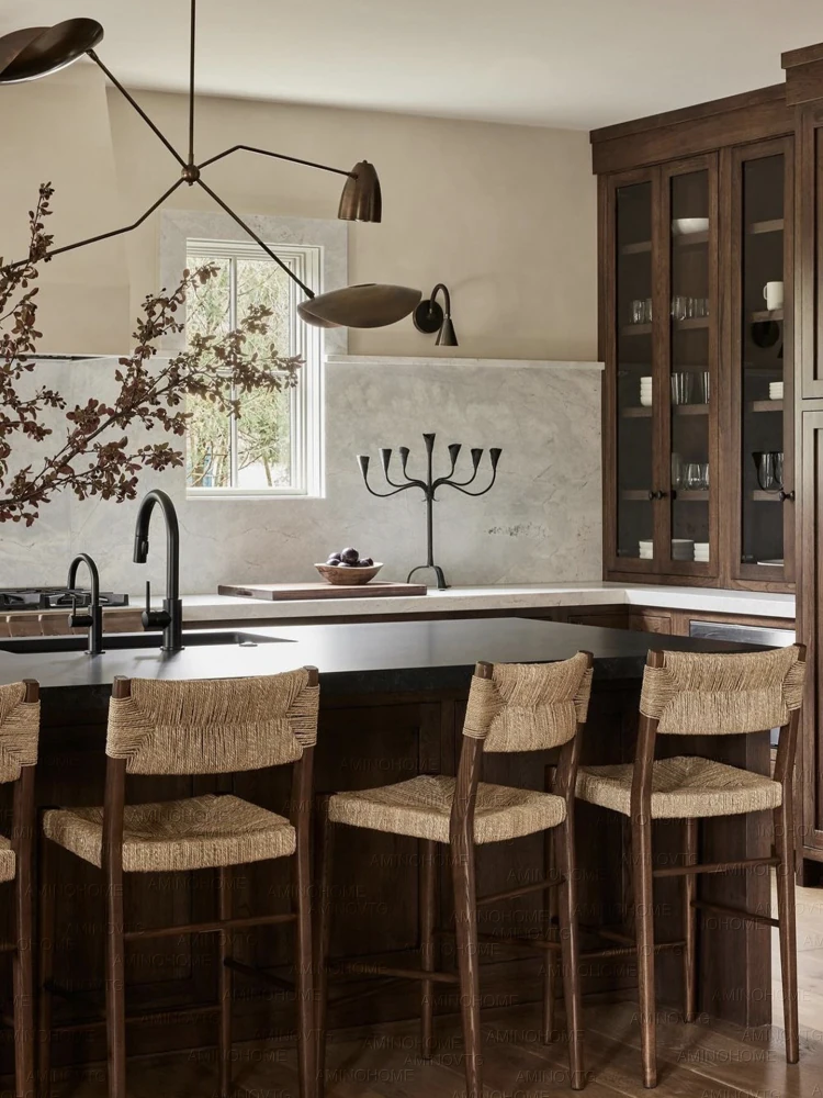 北米産ブラックウォールナット バー台・バースツール 家庭用 フレンチヴィンテージ アイランドテーブル 高脚椅子 中古風侘寂スタイル ラタンチェア【洗練されたデザインでおしゃれな空間を演出】