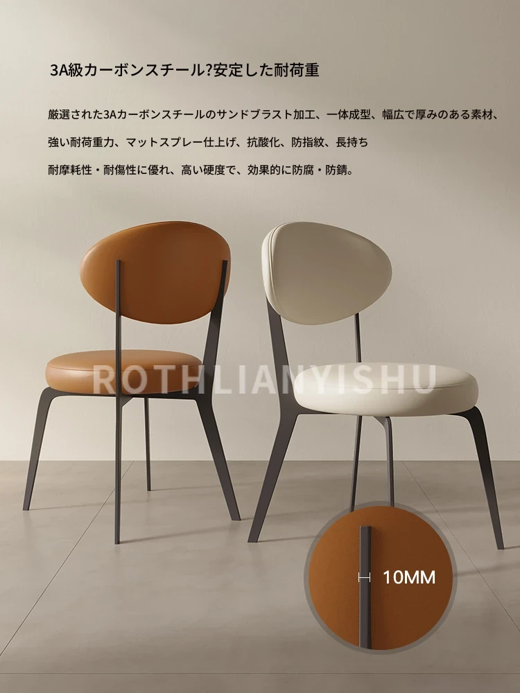 軽やかな高級感!ステンレス製のダイニングチェア、背もたれ付きで快適な座り心地。モダンでシンプルなデザイン、人気のレザー仕上げで食事の時間をおしゃれに演出します。