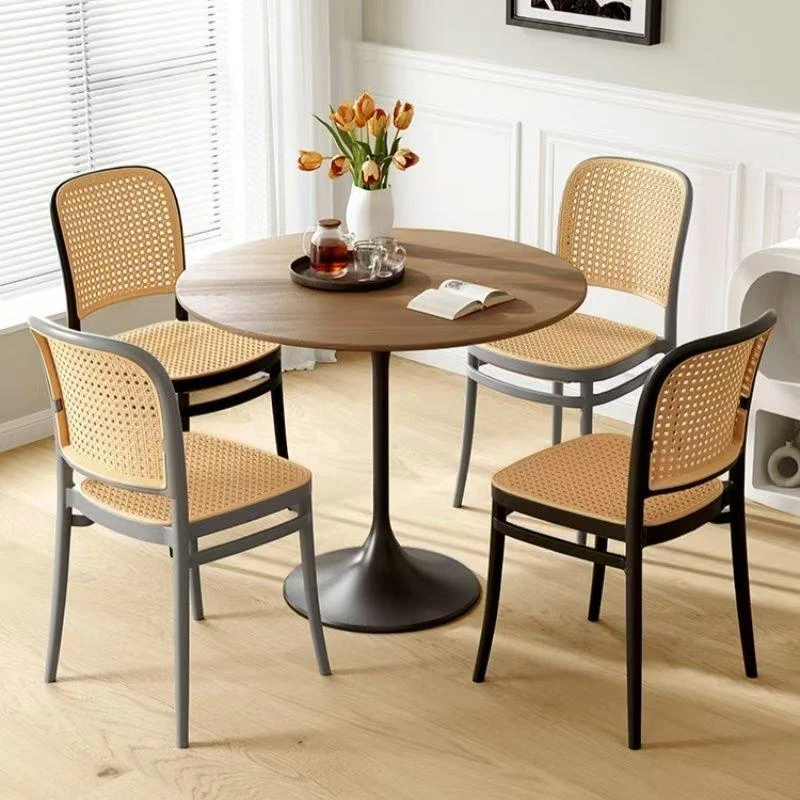 北欧風プラスチック製ラタンチェア|スタッキング可能|アウトドア・家庭用|おしゃれで快適な背もたれ付き|小スペースにも最適|人気のカジュアルダイニングチェア