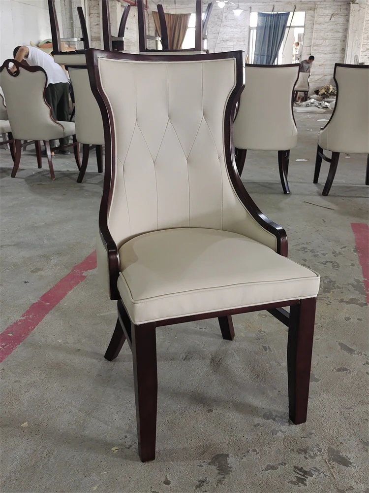 高級ラウンジ用モダン実木チェア - ソフトパック背もたれ付き、家庭用・ホテルの個室・レストランに最適なPUレザー製ダイニングチェア!快適さとスタイルを兼ね備えた一品。