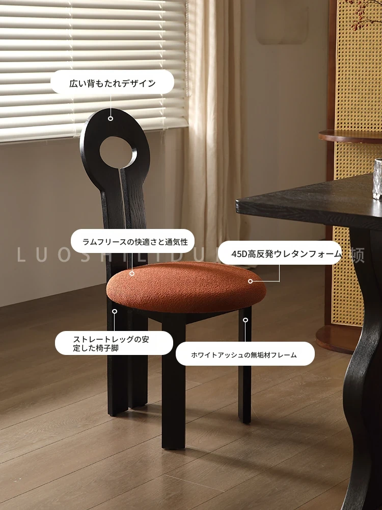 フレンチレトロスタイルの北欧風無垢材ダイニングチェア - おしゃれな家庭用テーブル&椅子、上品なヴィンテージ感と機能性を兼ね備えたメイクアップスツールにも最適!
