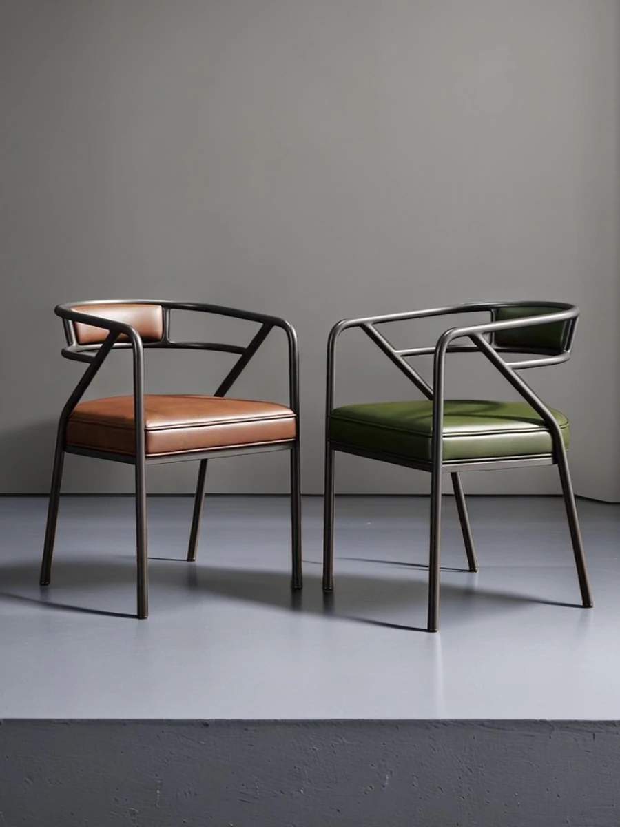 北欧スタイルの軽奢華ダイニングチェア - モダンでシンプルなアイアン製背もたれ付き、快適な座り心地。商談や書斎にも最適なデザイン、あなたのダイニングルームをおしゃれに演出します!