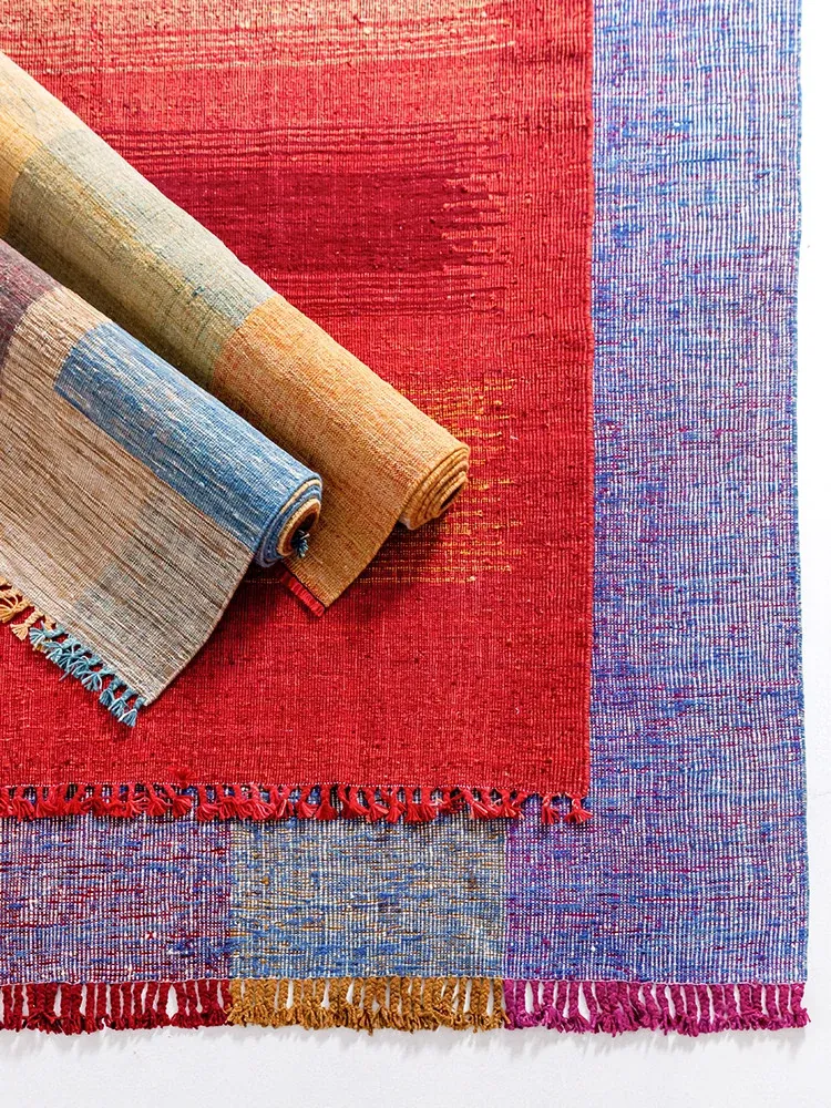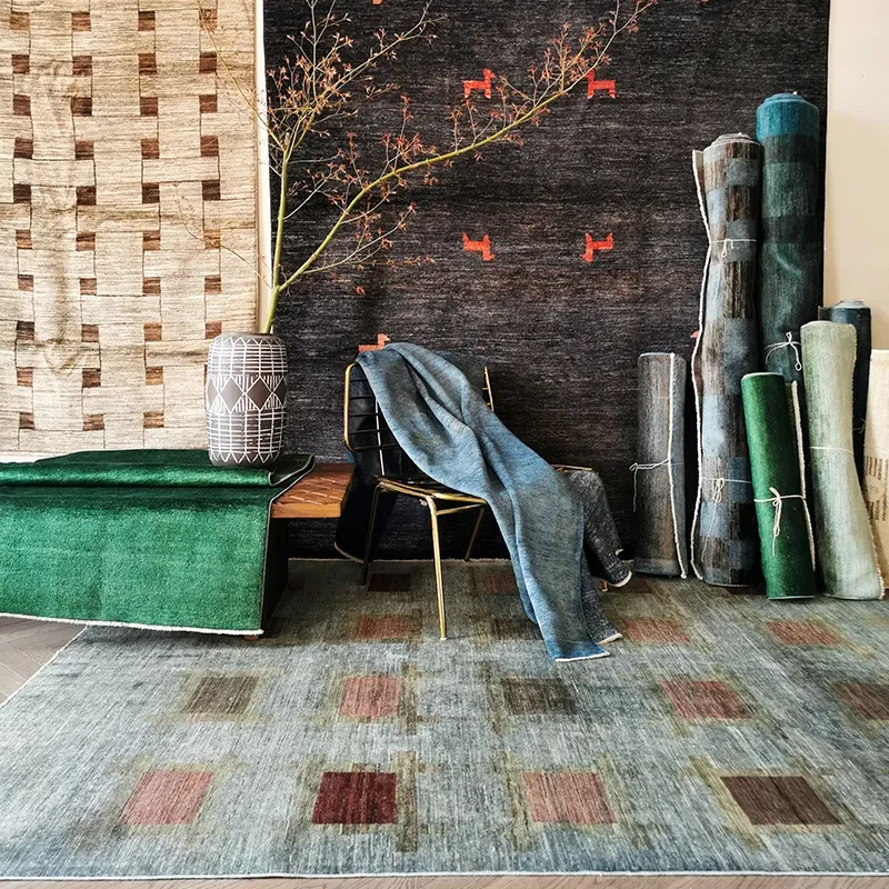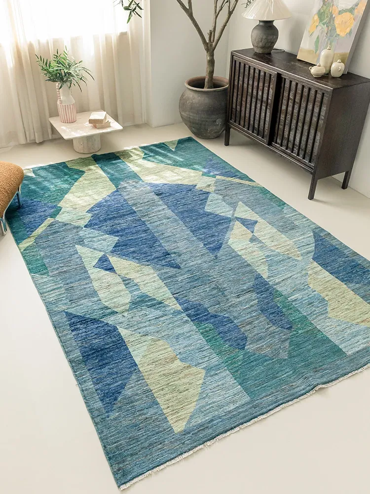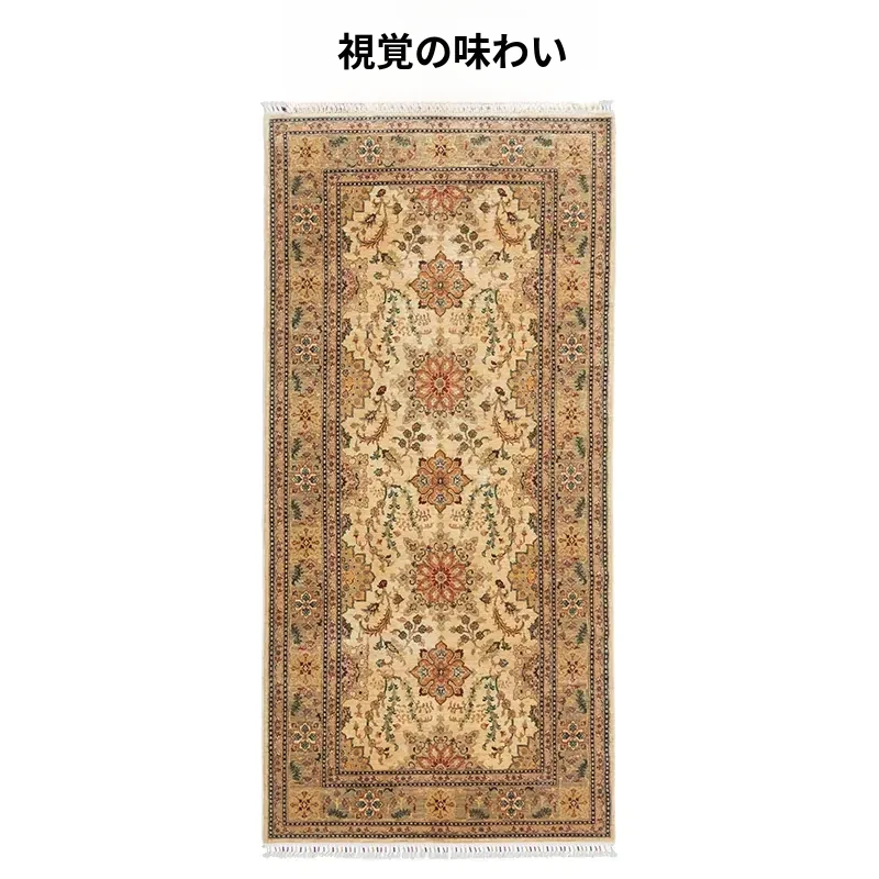 視覚と味覚を楽しむ、輸入手作りシルク製モダンラグ。軽やかな高級感が漂う、別荘のリビングにぴったりな接着剤不使用のこだわりカーペット。