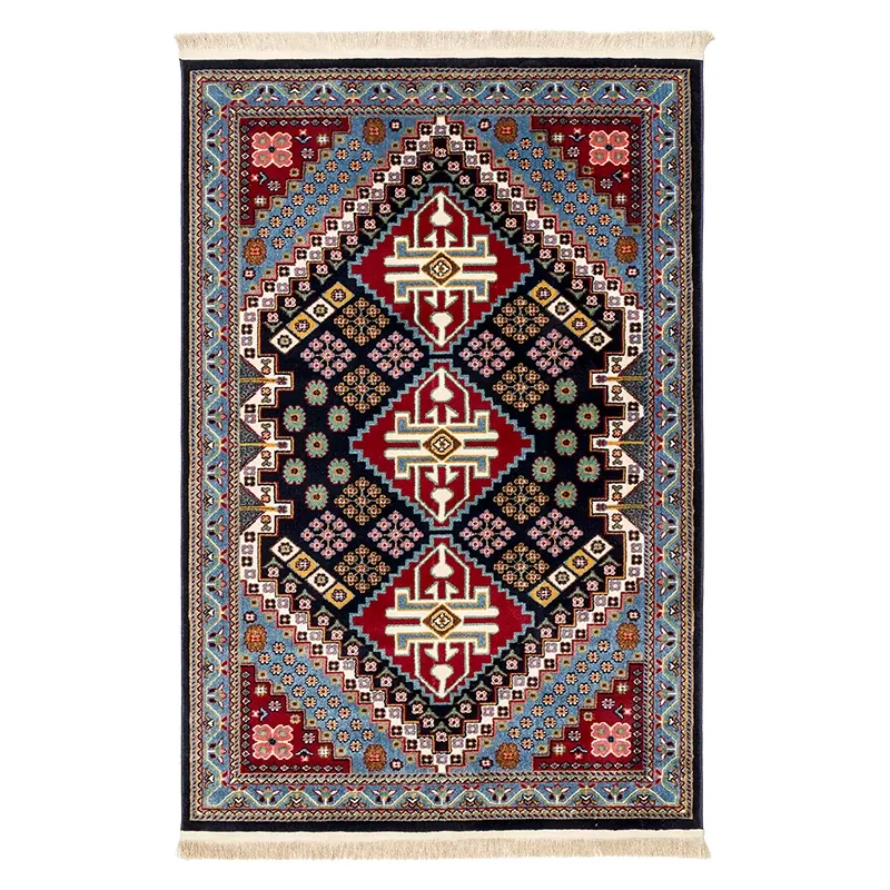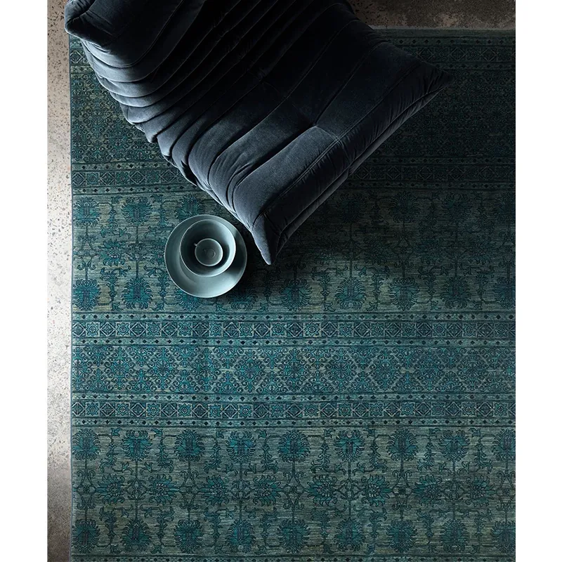視覚と味覚を楽しむ手作りウールラグ - レトロなブルーの高級感漂うアフガニスタン直輸入、接着剤・フォルムアルデヒド不使用で安心安全!