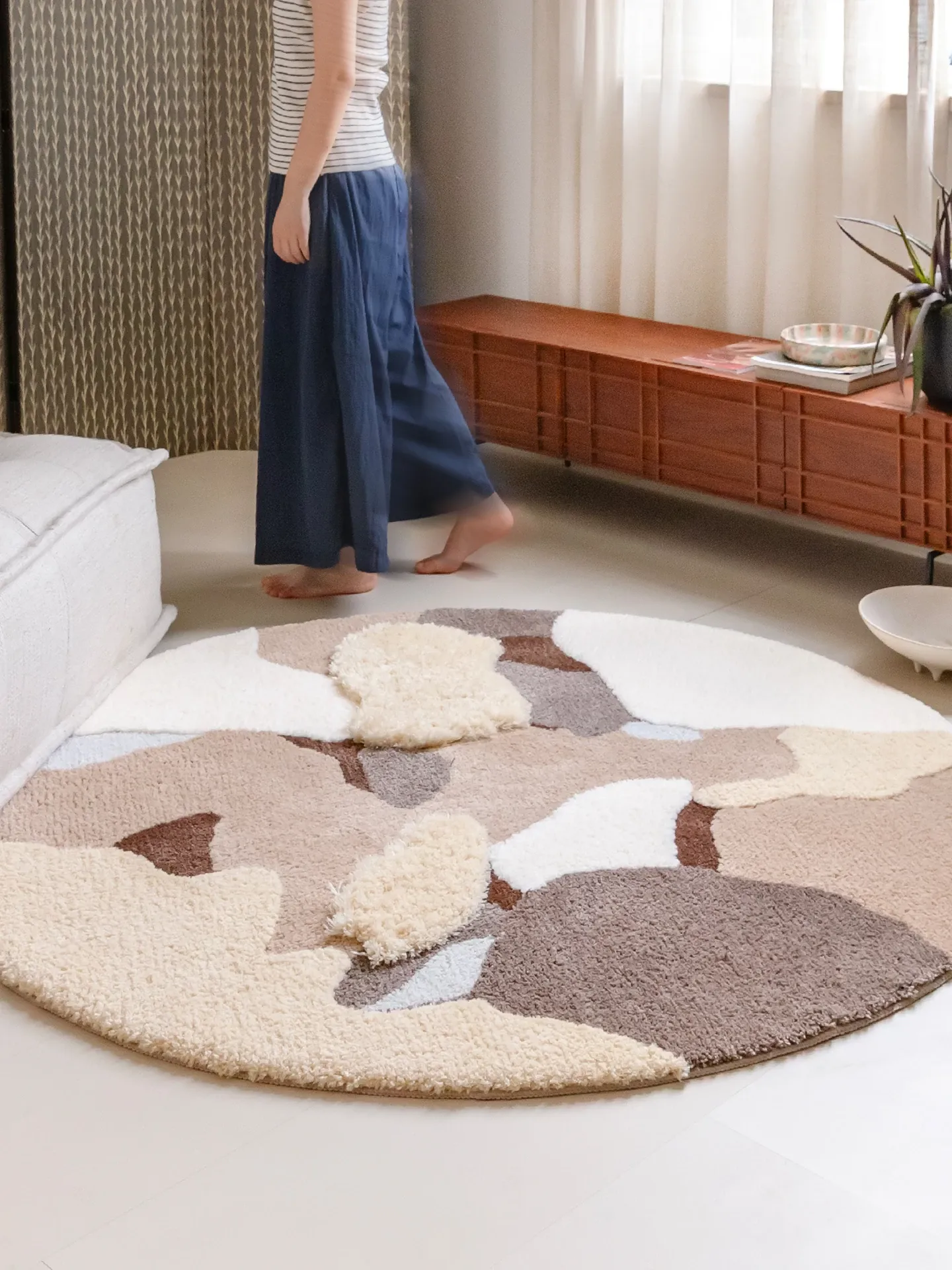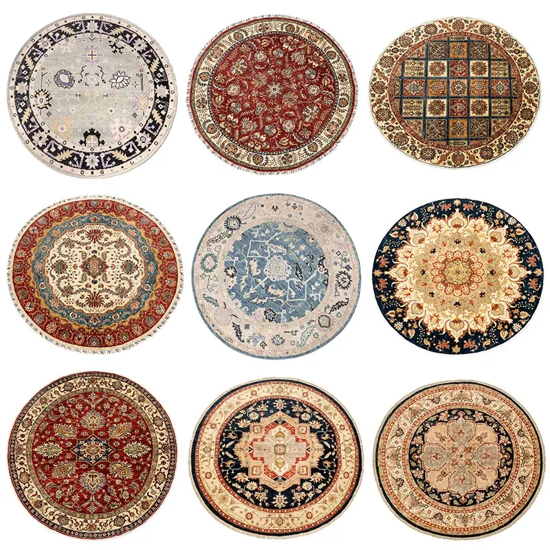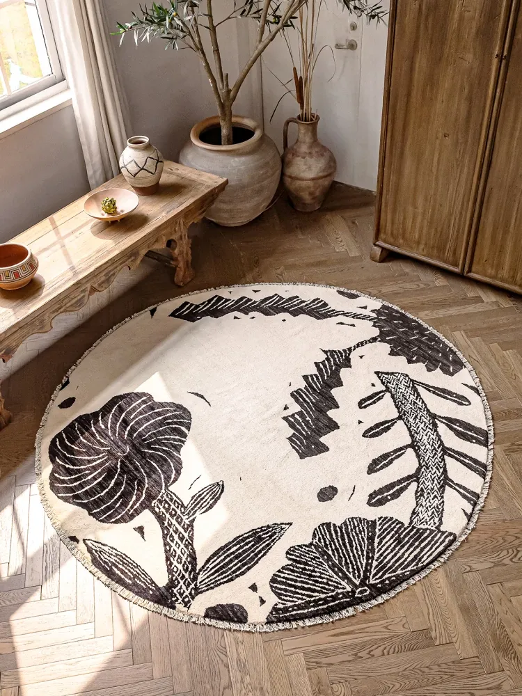 視覚と味わいを楽しむ!輸入丸型純手作りウールラグ - シンプルで侘び寂びを感じるアフガニスタン製リビングルームカーペット、ホルムアルデヒド不使用。