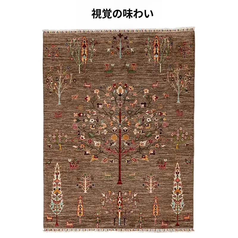 視覚と味覚を楽しむアフガニスタン産手織りウールカーペット - クラシックなリビングコレクション、生命の樹デザインでお部屋を華やかに演出!