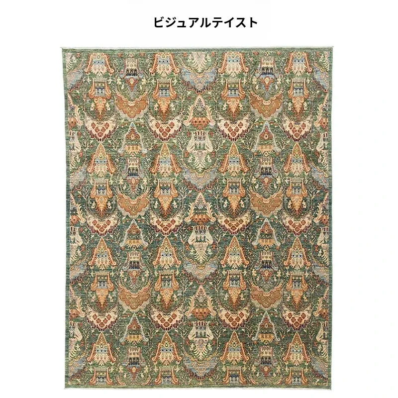 視覚と味覚の贅沢体験!アフガニスタン直輸入の新古典スタイルグリーンラグ、豪華なビラのリビングルームにぴったりの手作りウールカーペット。