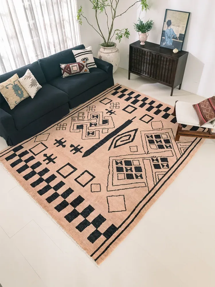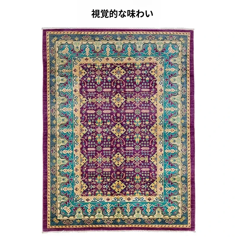 視覚と味覚の調和 アフガニスタン直輸入 羊毛ラグ モロッコ風 手作り現代侘寂スタイルのカーペット