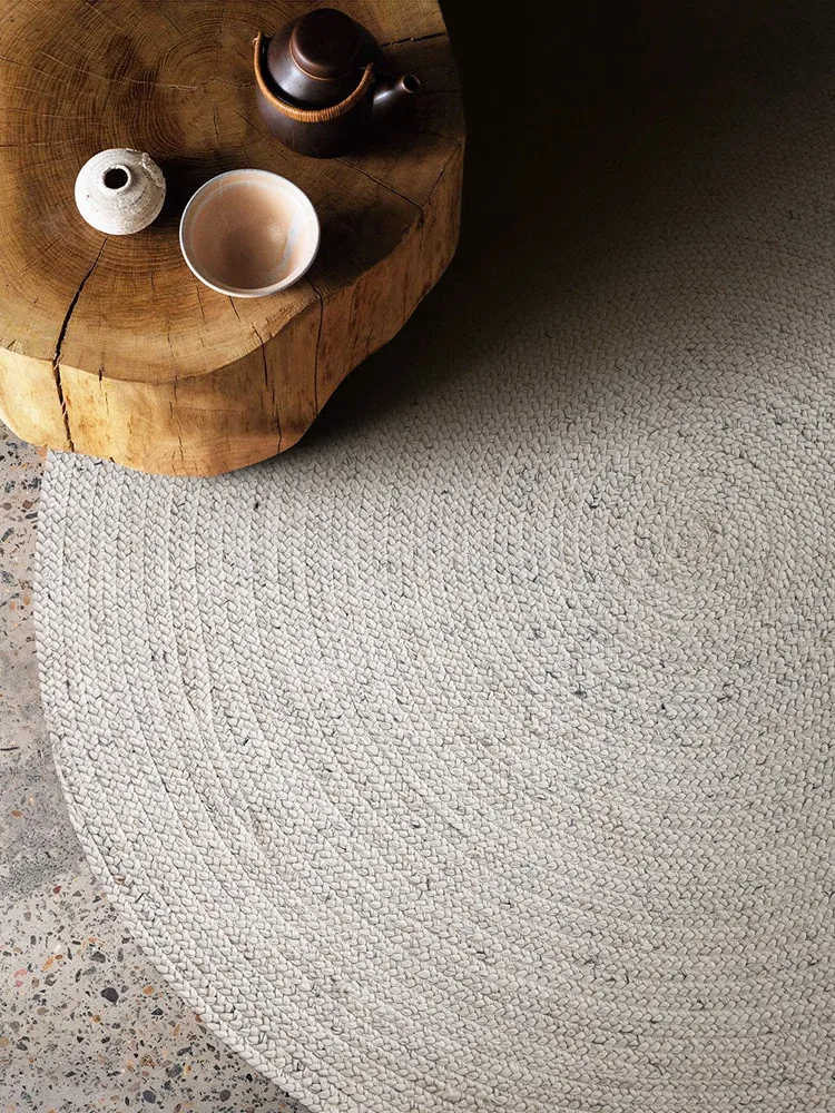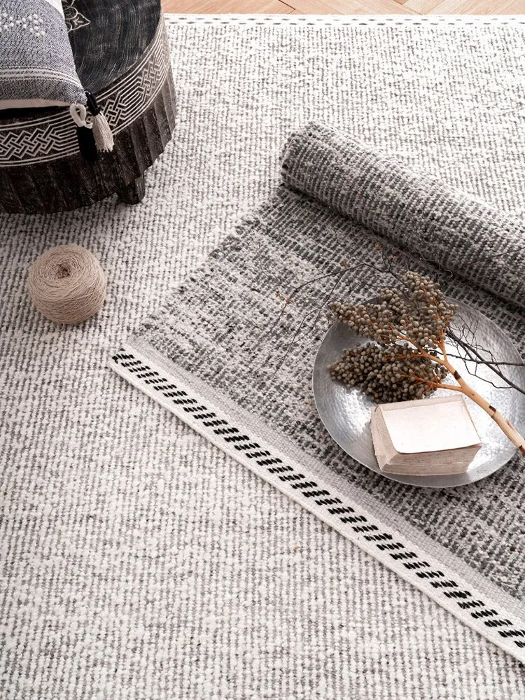 輸入手作ウールの侘び寂びスタイル モダンミニマリズム 高級感溢れる無地カーペット リビングソファやベッドサイドに最適!