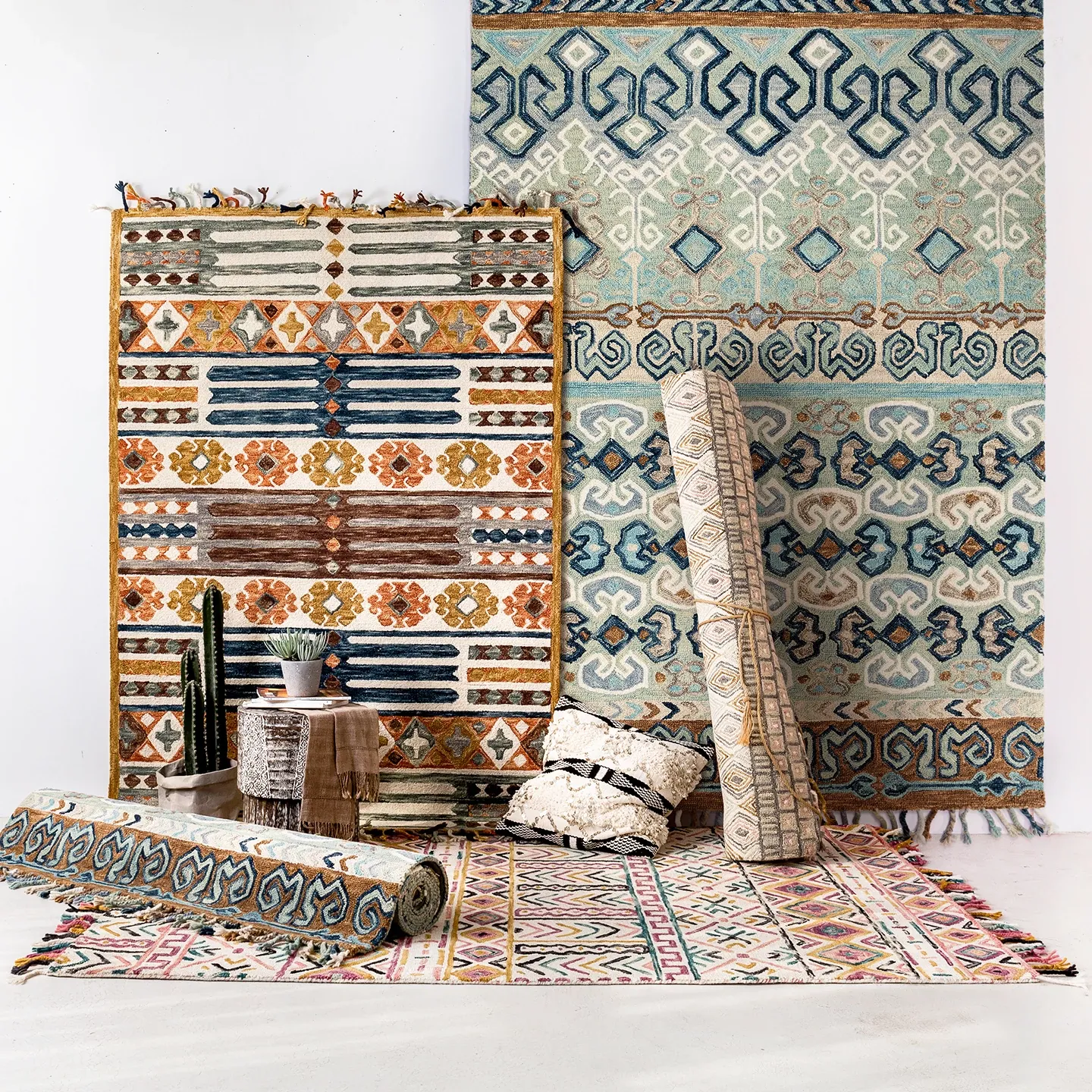 視覚と味覚を刺激するトルコ輸入のウール手織り民族風レトロ几何学デザインのリビングマット&タペストリー。おしゃれな空間を演出し、心地よい触感をお楽しみください!