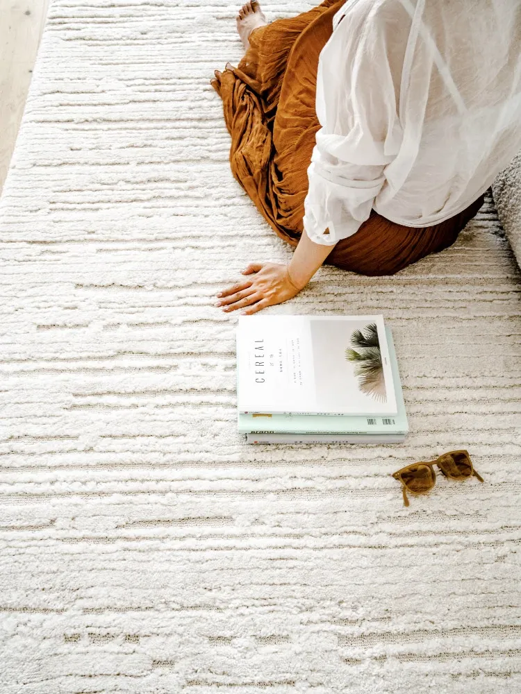 視覚的な美味しさを楽しむ!トルコ直輸入のモダン・ライトラグ。凹凸デザインで、ミニマリストな侘寂スタイルのリビングや寝室にぴったりのカーペットです。高級感と心地よさを兼ね備えた一品!