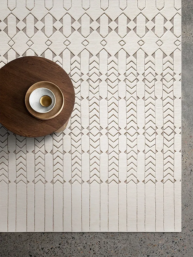 ビジュアルと味覚の調和、羊毛製のラグで高級感漂うリビングルームに。モダンでラグジュアリーな不規則デザイン、主寝室やクローゼットにも最適なマットです。