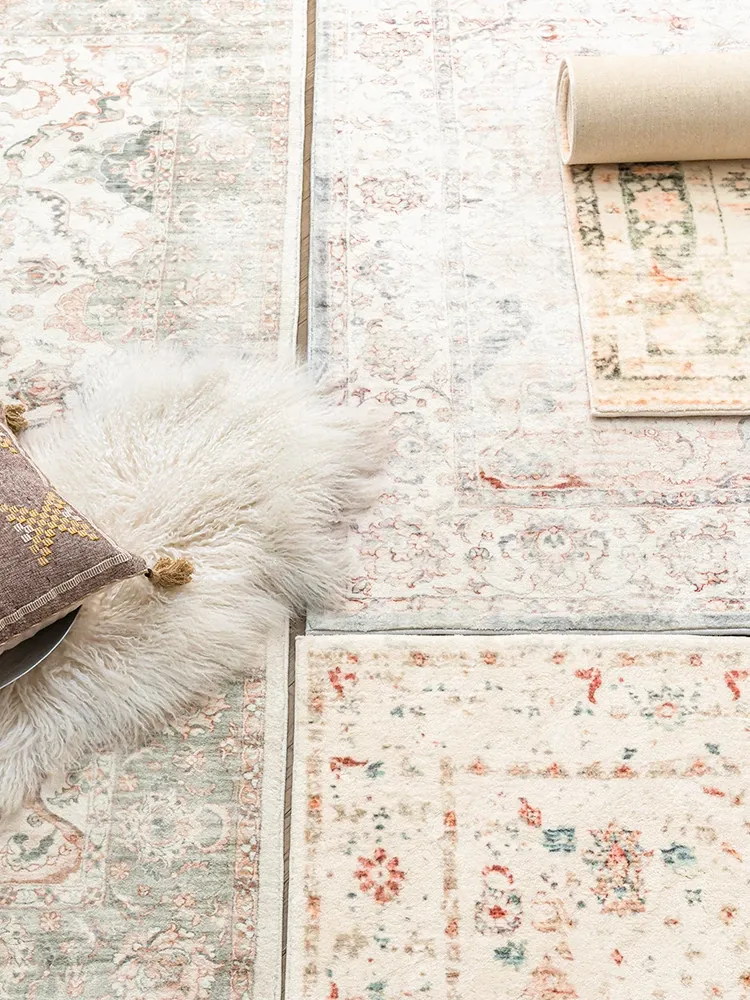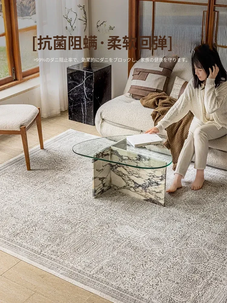 ビジュアルデザインのトルコ製モダンレトロカーペット|フランス風リビングにぴったり|抗菌・お手入れ不要|エコな寝室にも最適!