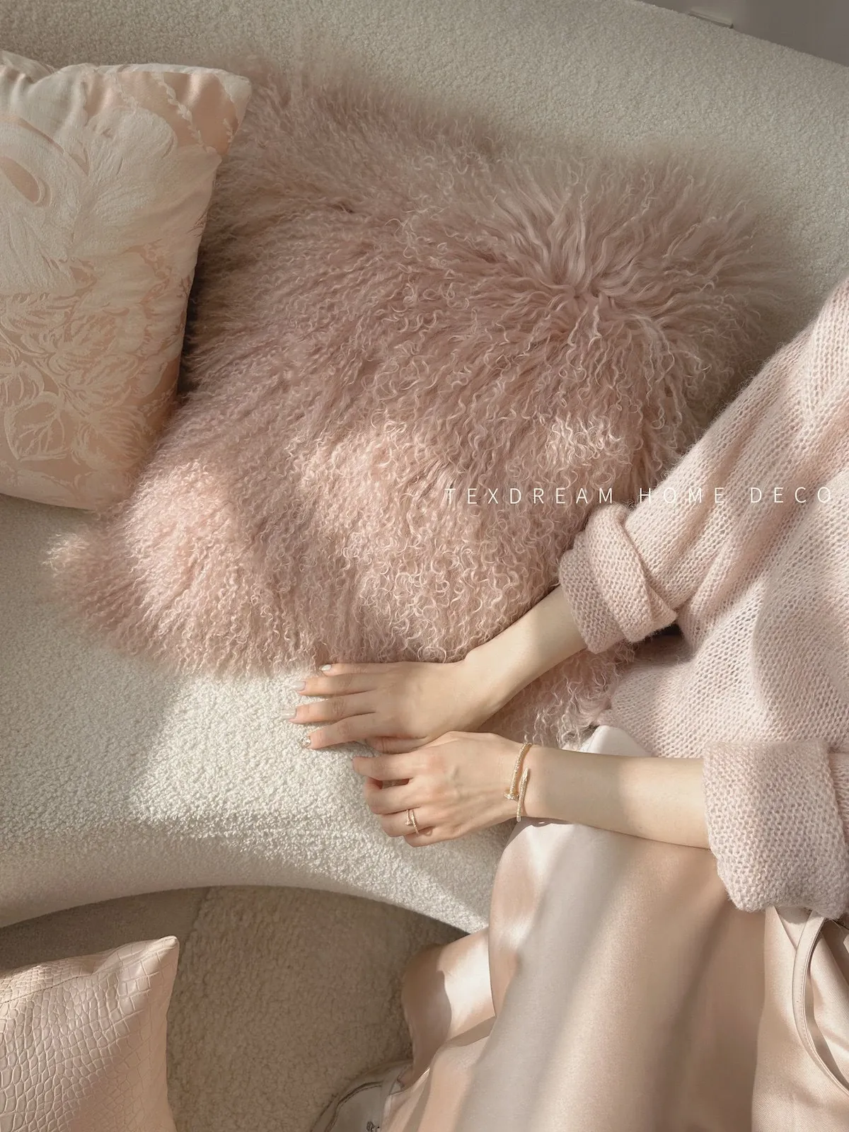 Texdreamのミレニアルピンクウサギ毛クッション、北欧風のシンプルでラグジュアリーなデザイン!インテリアにぴったりなソファ用クッションカバー。あなたのリビングをスタイリッシュに演出します!