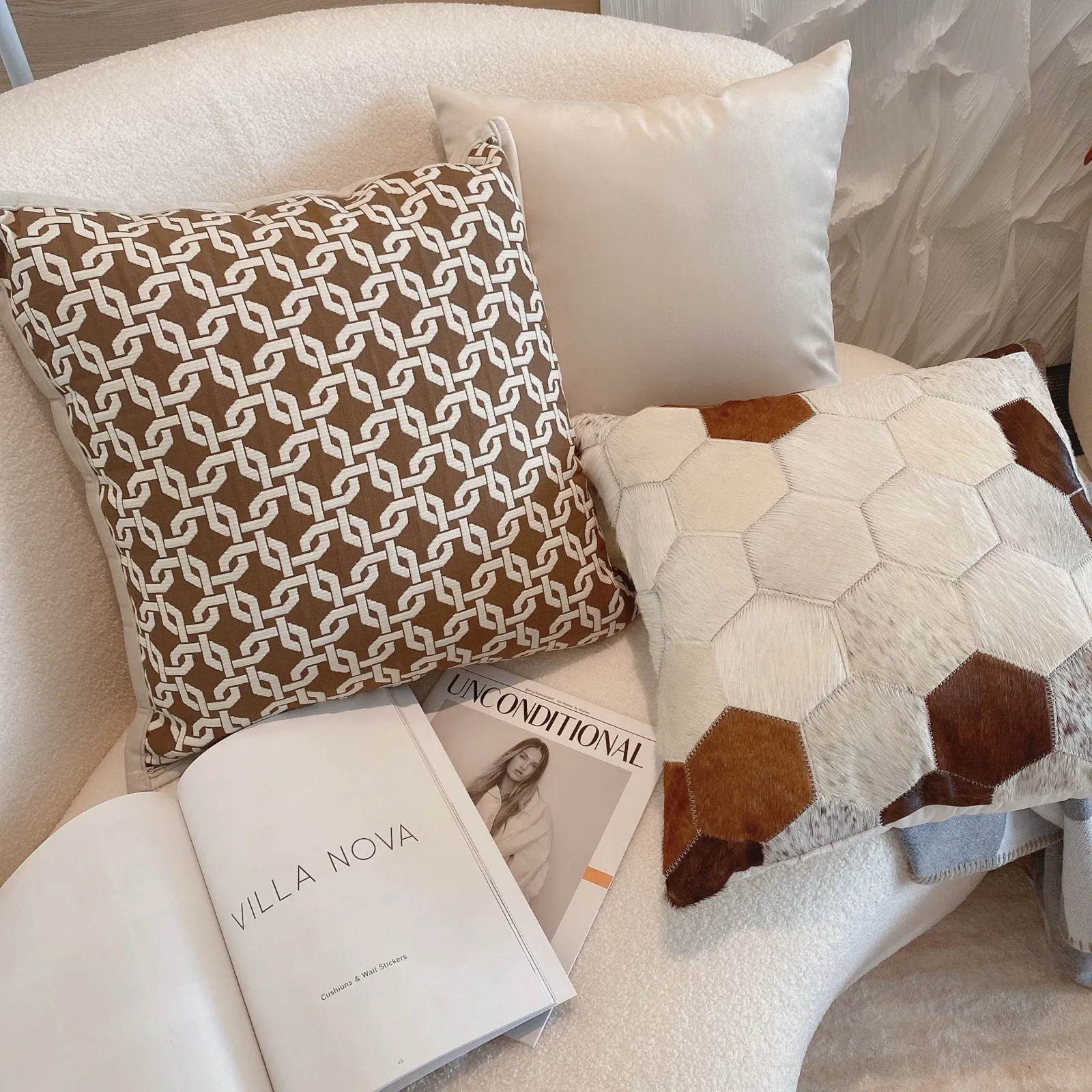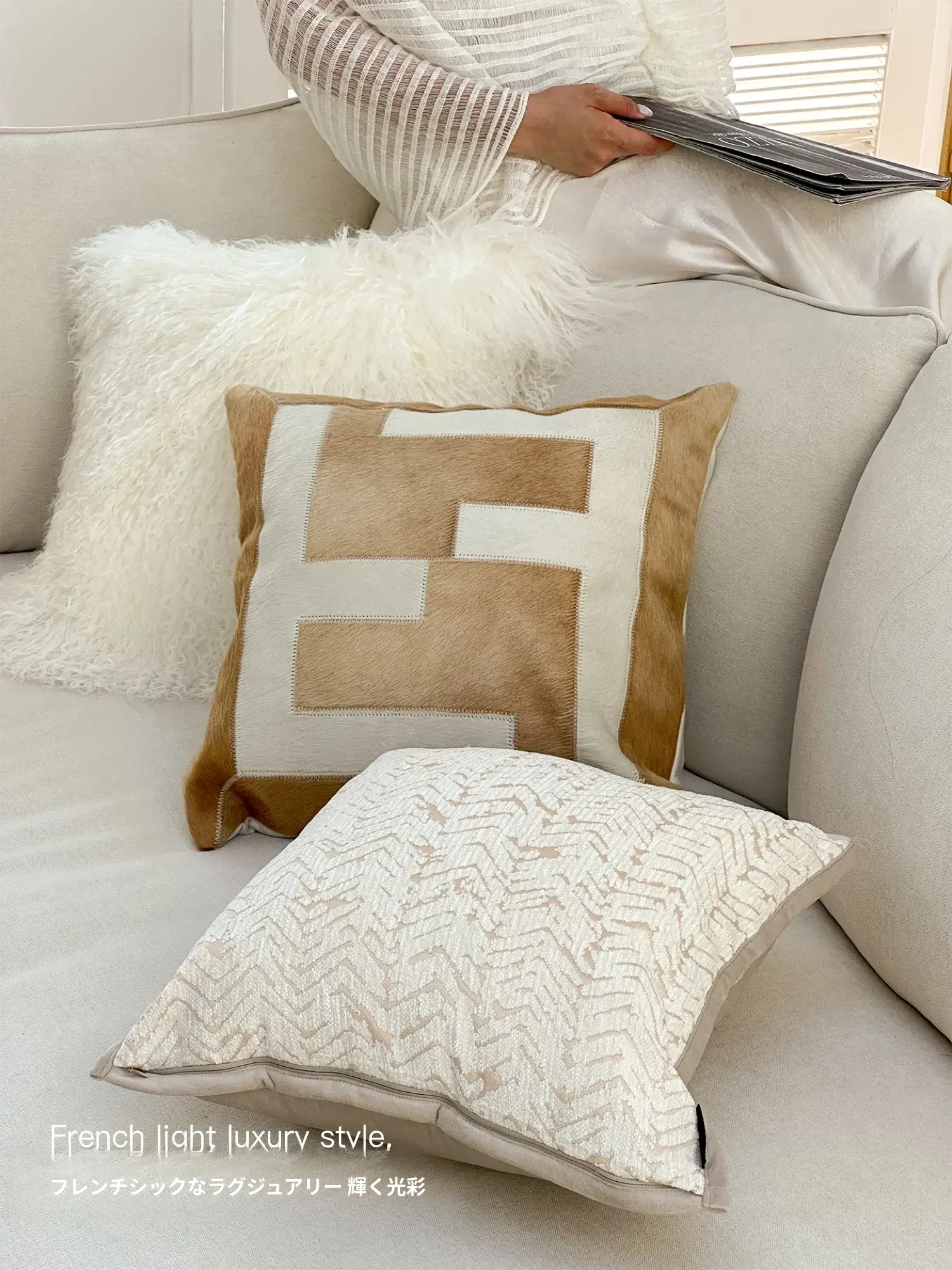 Texdreamのスタイル 羊毛レザー製クッションカバー|インテリアにぴったりのラグジュアリー感!高級感あふれるサンプルルームやソファ、ベッドヘッドに最適なアイテムです。