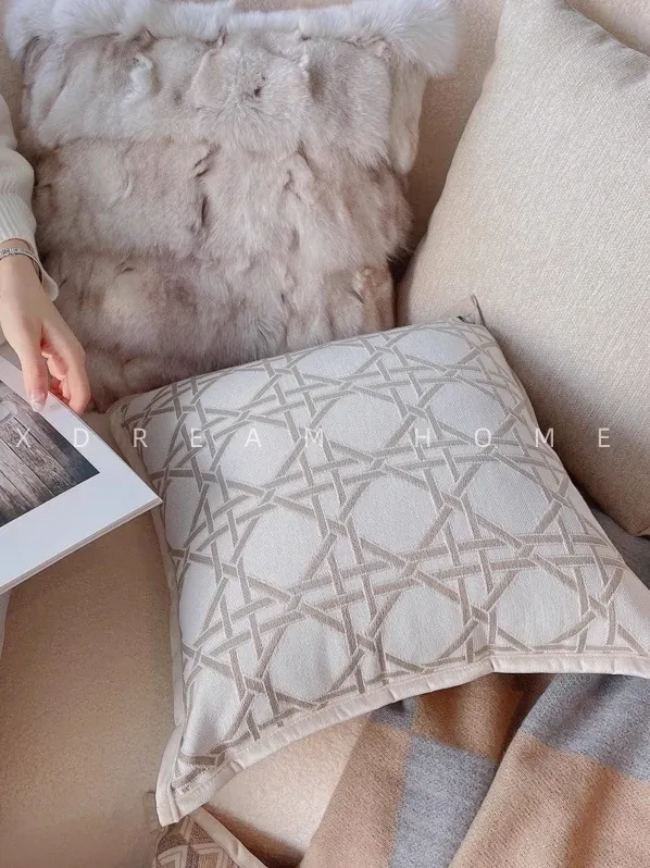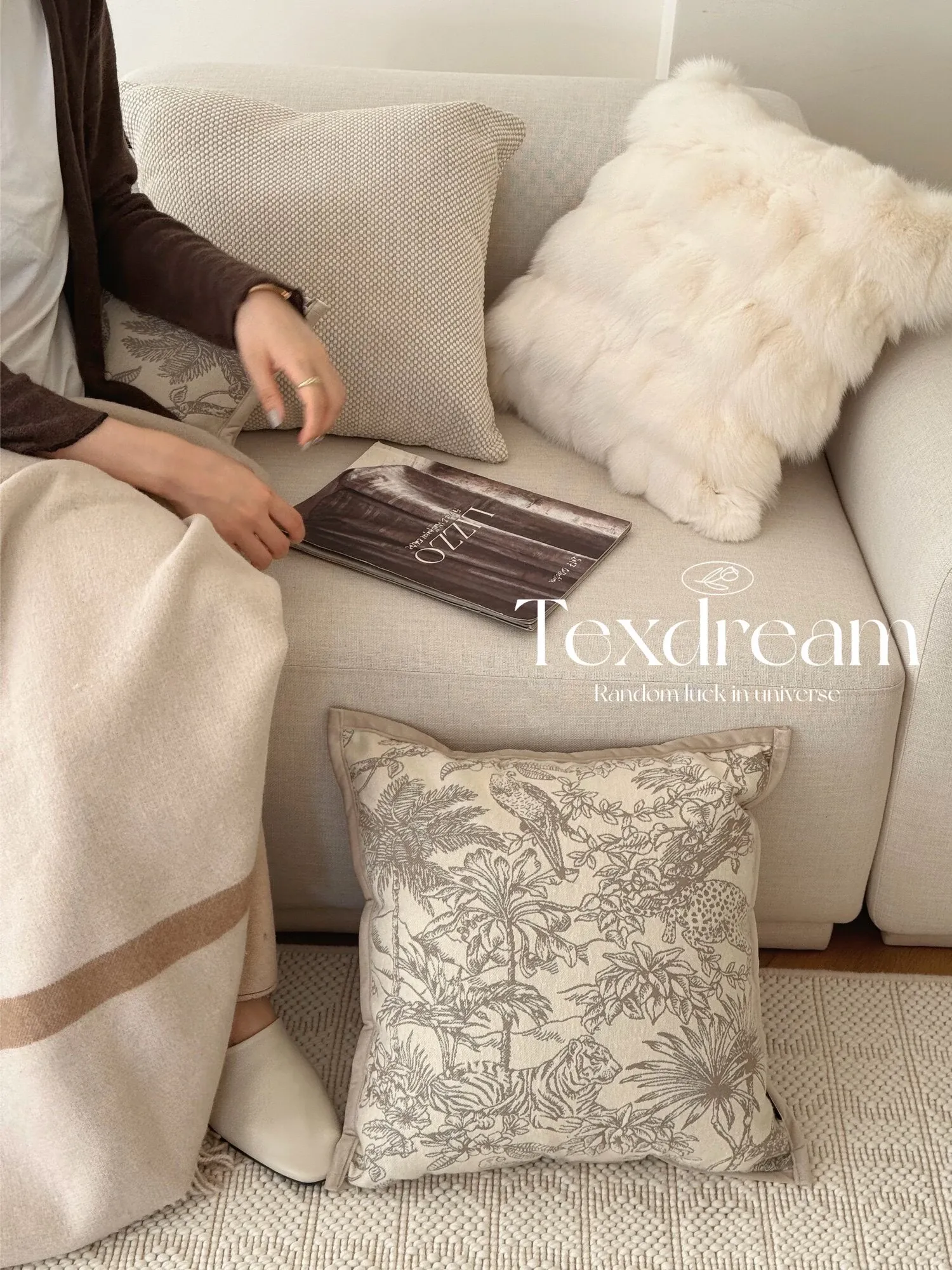 TEXDREAMのスタイリッシュなフレンチラグジュアリーソファクッション、ファー素材使用!高級民宿のモデルルームにもぴったりなベッド用クッション&腰枕で、心地よい寝室空間を演出します。