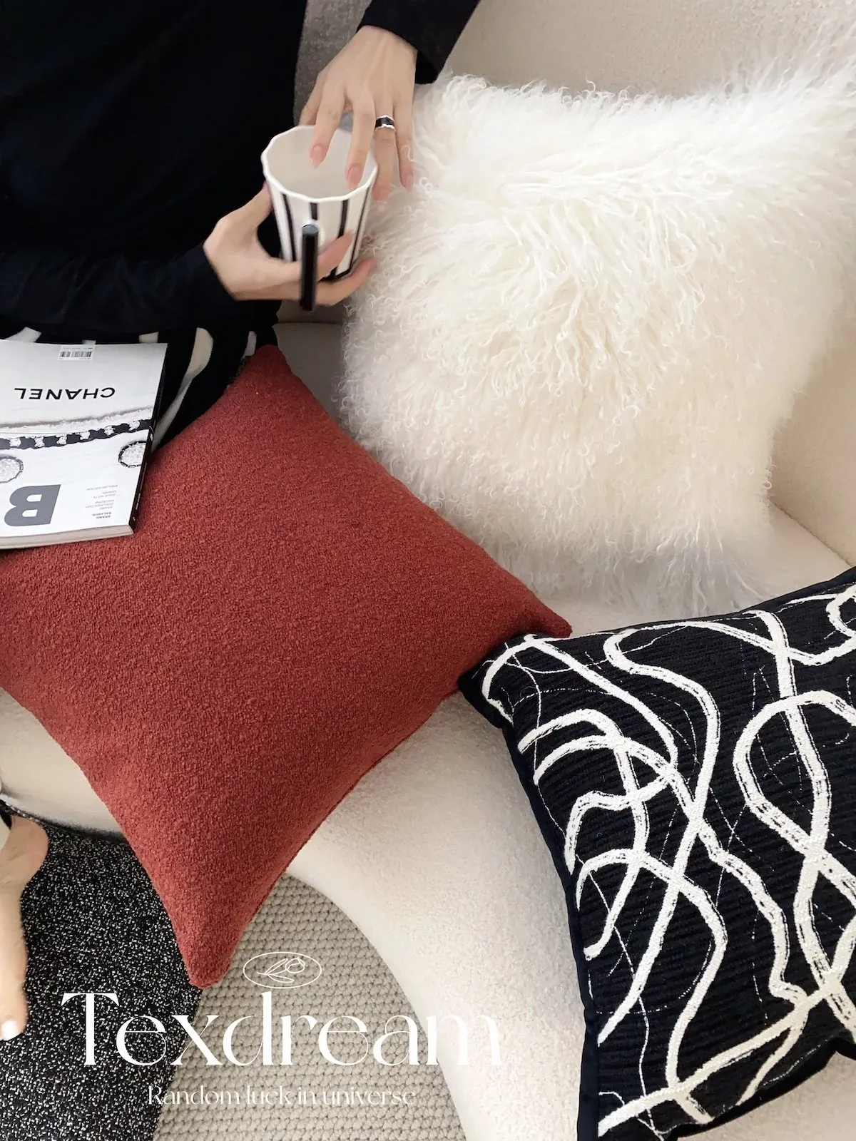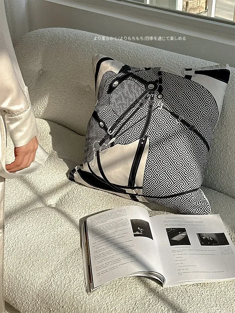 TEXDREAMのアティチュード モノクロテクスチャー シンプルなソファクッション 侘寂風ホテルスタイル 高級感溢れるベッドサイドクッション