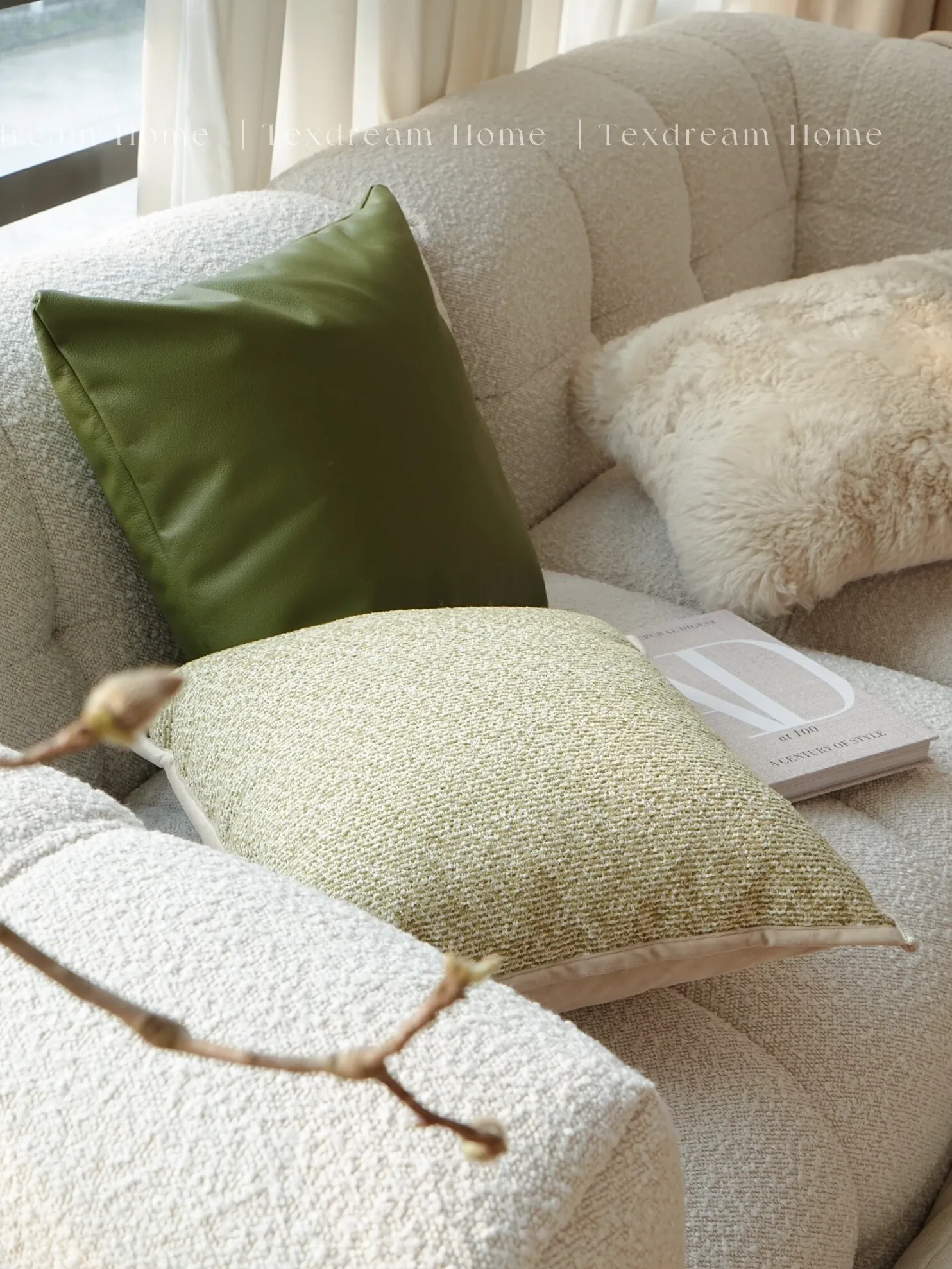 Texdreamのスタイリッシュなグリーンスプリングサマー抱き枕!ウール製のラグジュアリー感あふれるクッションカバーで、リビングや寝室を清新に彩ります。おしゃれなサンプルルームにもぴったりのアイテムです!