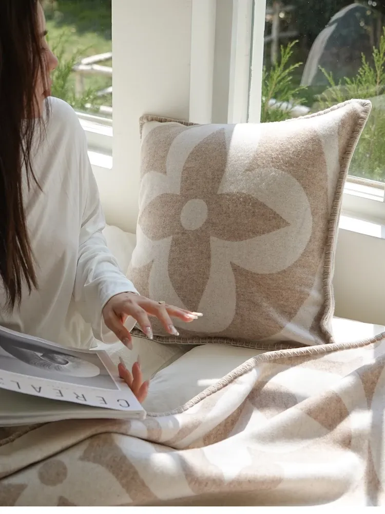 テックスドリームのクールなクローバーデザイン!モダンなライトラグジュアリーのカシミヤクッションとリラックスブランケット。リビングルームやソファ、ベッドサイドにぴったりのスタイリッシュなアイテムです。