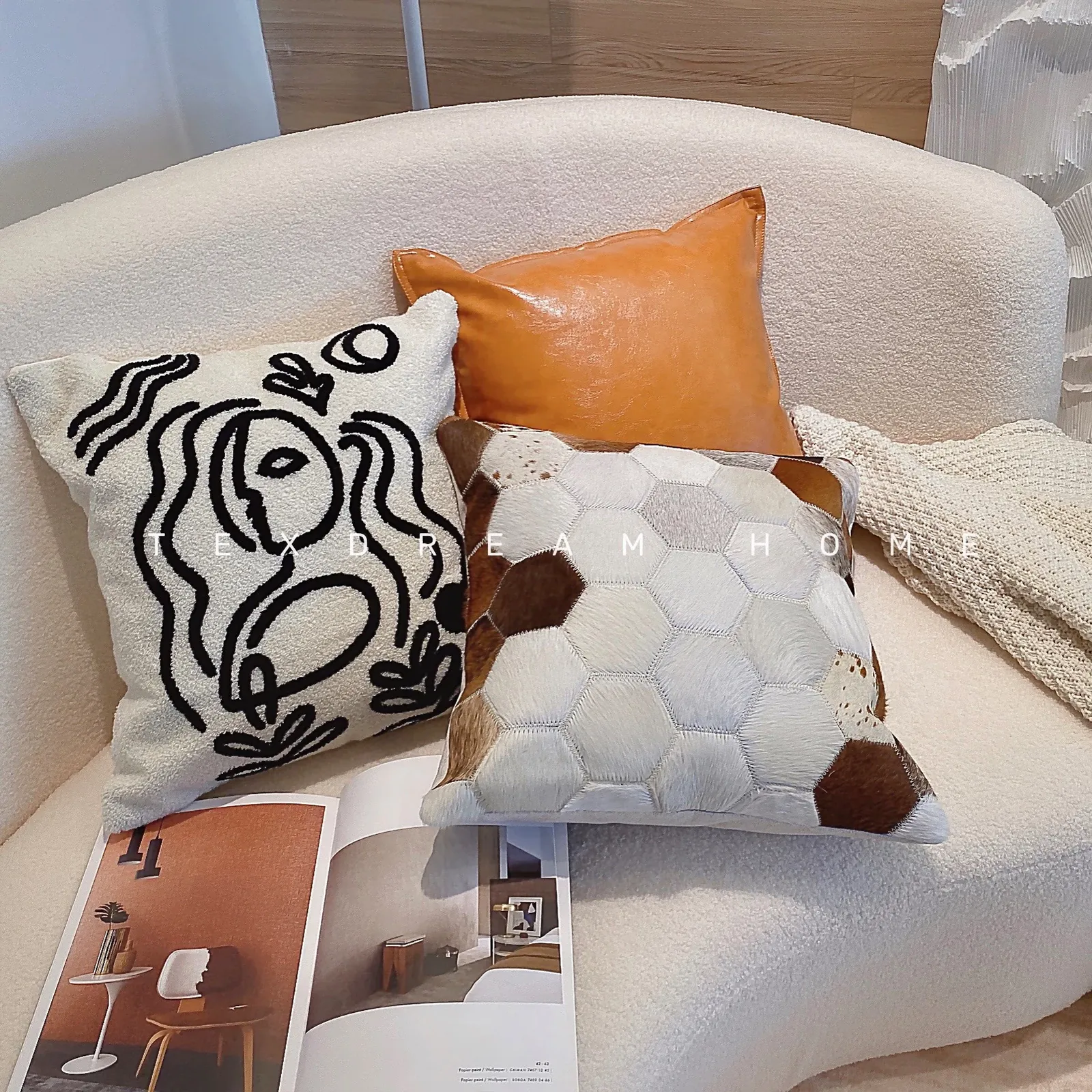 Texdreamのアティテュード ピカソ立体刺繍クッション 牛革ソファ用 リビングスタイルのミニマリストクッションで、居心地の良い空間を演出!