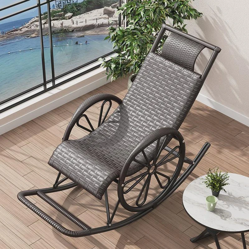 Comfortable Rattan Rocking Chair for Adults - Ideal for Balcony, Living Room, and Bedroom. Perfect Lazy Chair for Elders. Embrace Relaxation with this Stylish Oriental Design!
