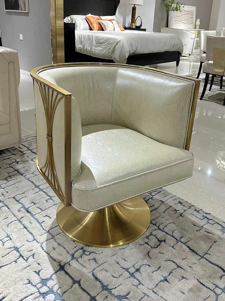 Caracole American Sienna Luxe Black Label Lounge Chair - Premium Snake Skin Leather & Metal Swivel Armchair for Stylish Living Spaces