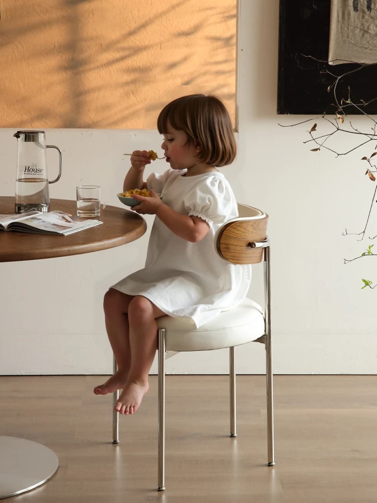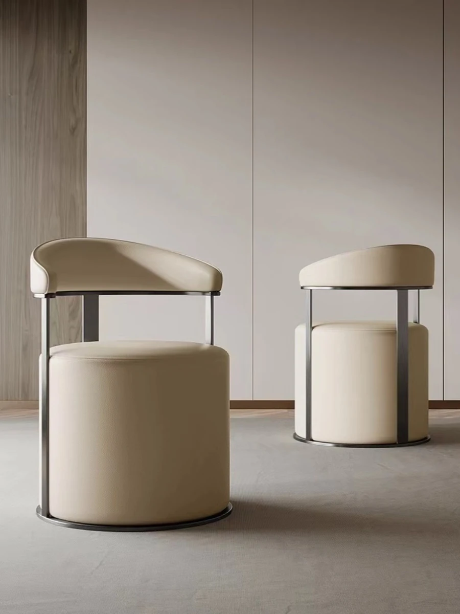Italian Minimalist Dining Chair - Modern Luxury Round Back Stool for Home, French Cream Style, Perfect for Dining Rooms and Tables