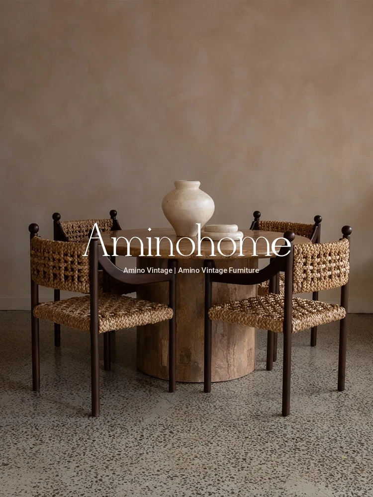 Vintage Oak Solid Wood Dining Set for Nordic Restaurants - Scandinavian Style Rattan Dining Table and Chairs with Backrest, Perfect for Home and Dining Establishments