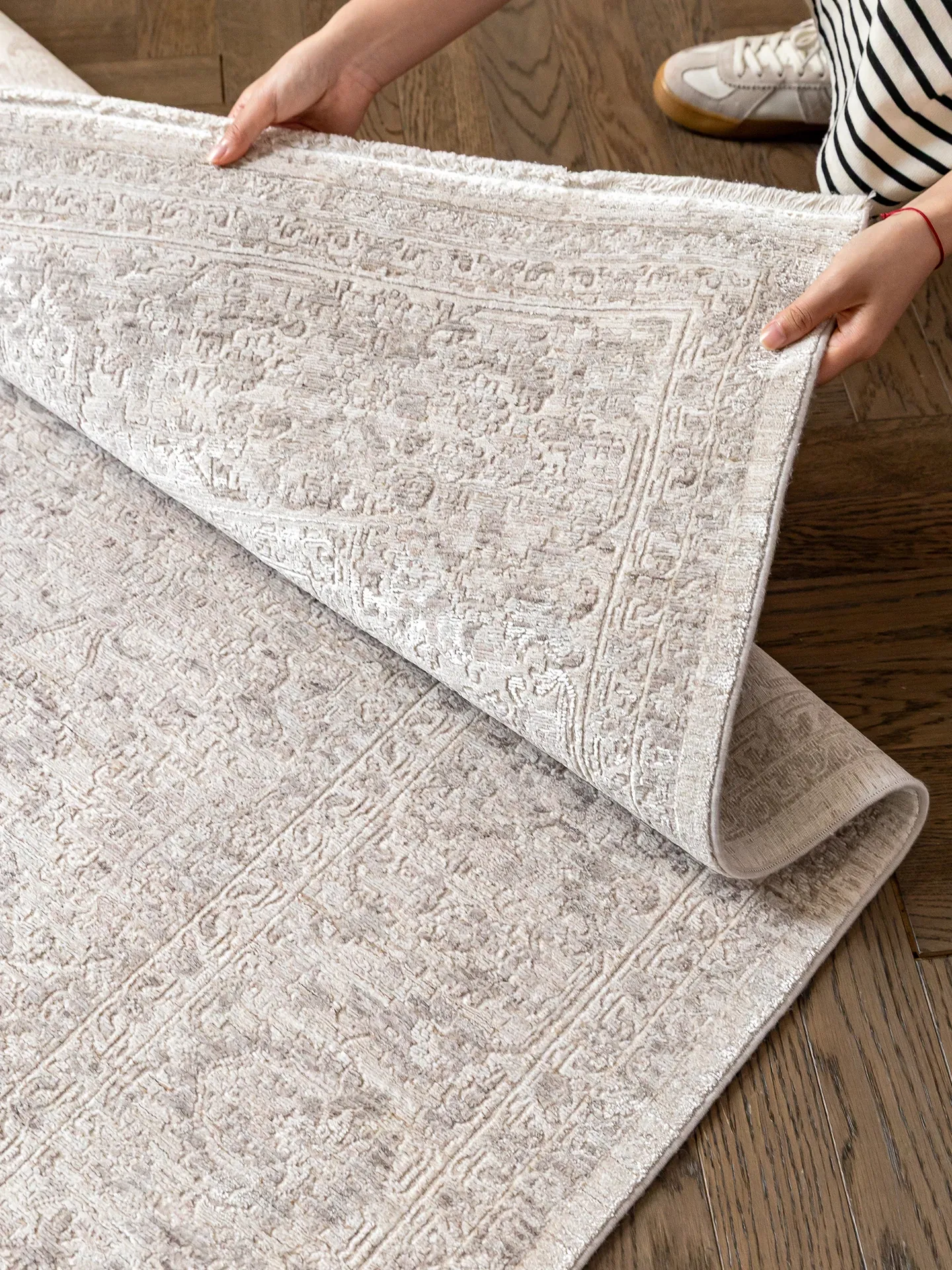 Handcrafted Modern Luxury Gray Carpet for Living Room - No Formaldehyde, No Glue, Minimalist Design with Bamboo Fiber Silk, Perfect for Sophisticated Spaces.