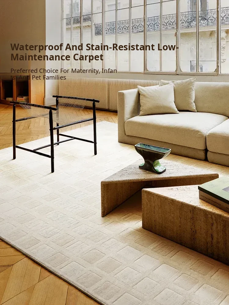 Visual Taste Waterproof and Stain-Resistant Living Room Carpet - Easy Care, No Washing Needed, Creamy Aesthetic, Luxurious and High-End Wabi-Sabi Design