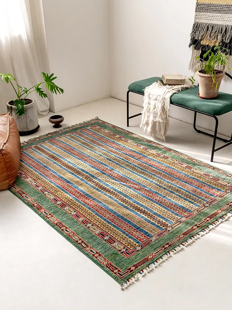 Luxurious Handwoven Afghan Wool Area Rug for Living Room - Eco-Friendly, Glue-Free, and Formaldehyde-Free in Elegant Green Color