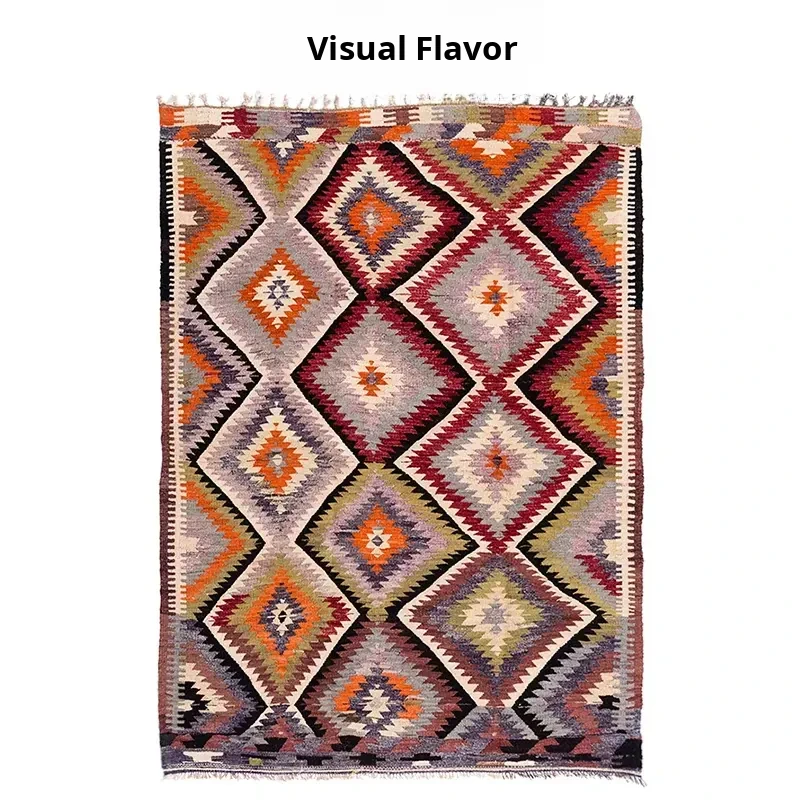 Turkish Imported Ethnic Style Handwoven Wool Carpet - Vintage Geometric Small Area Rug for Living Room, Eco-Friendly Wall Hanging Decor