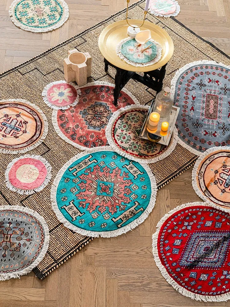Elegant Turkish Round Carpet - Vintage French Style for Dressing Rooms and Vanities - Luxurious Small Area Rug to Enhance Your Space
