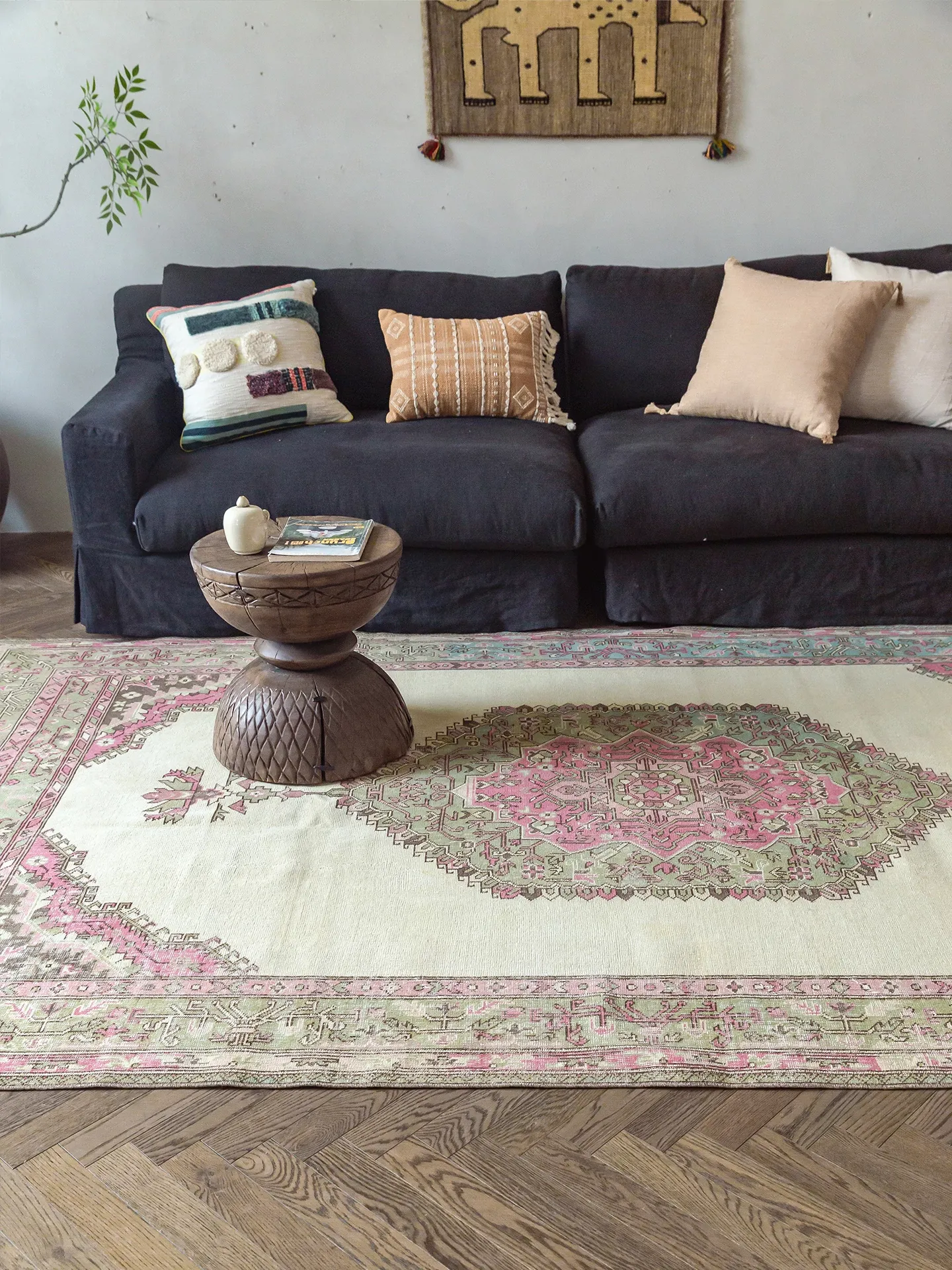 Visual Taste: Hand-Knotted Vintage Turkish Wool Carpet - Antique Style Handmade Rug for Living Room Decor