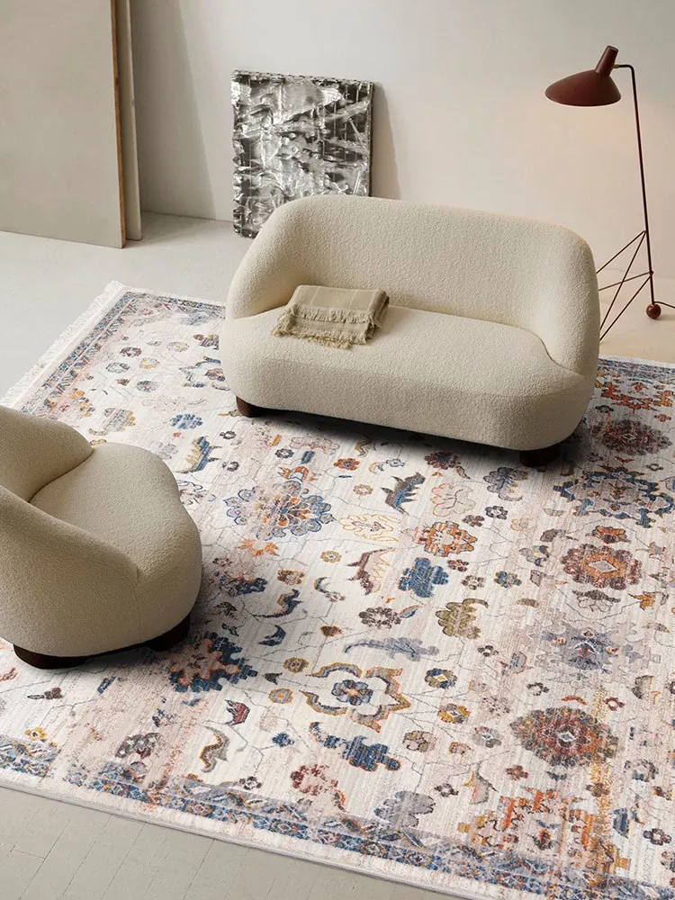 Vintage-Inspired Waterproof and Stain-Resistant Living Room Carpet - French Wabi-Sabi Design, Perfect for a Chic Aesthetic and Easy Maintenance.