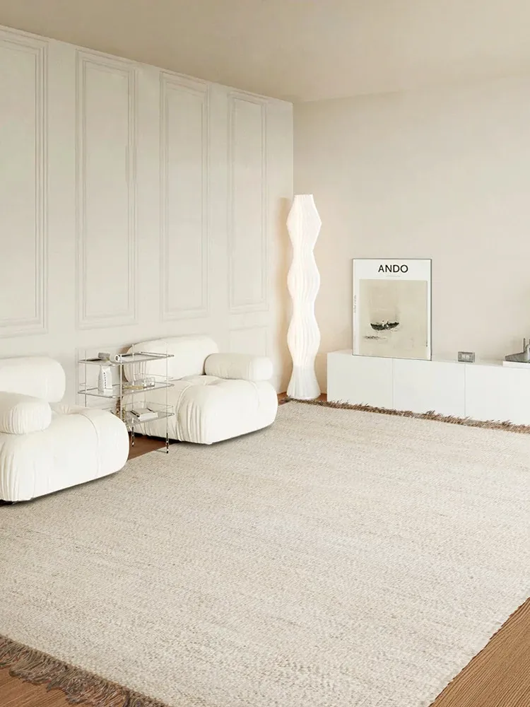 Elegant White Handmade Jute Area Rug for Living Room - Japanese Import, No Glue, Visual and Tactile Delight, Perfect for Tea Table