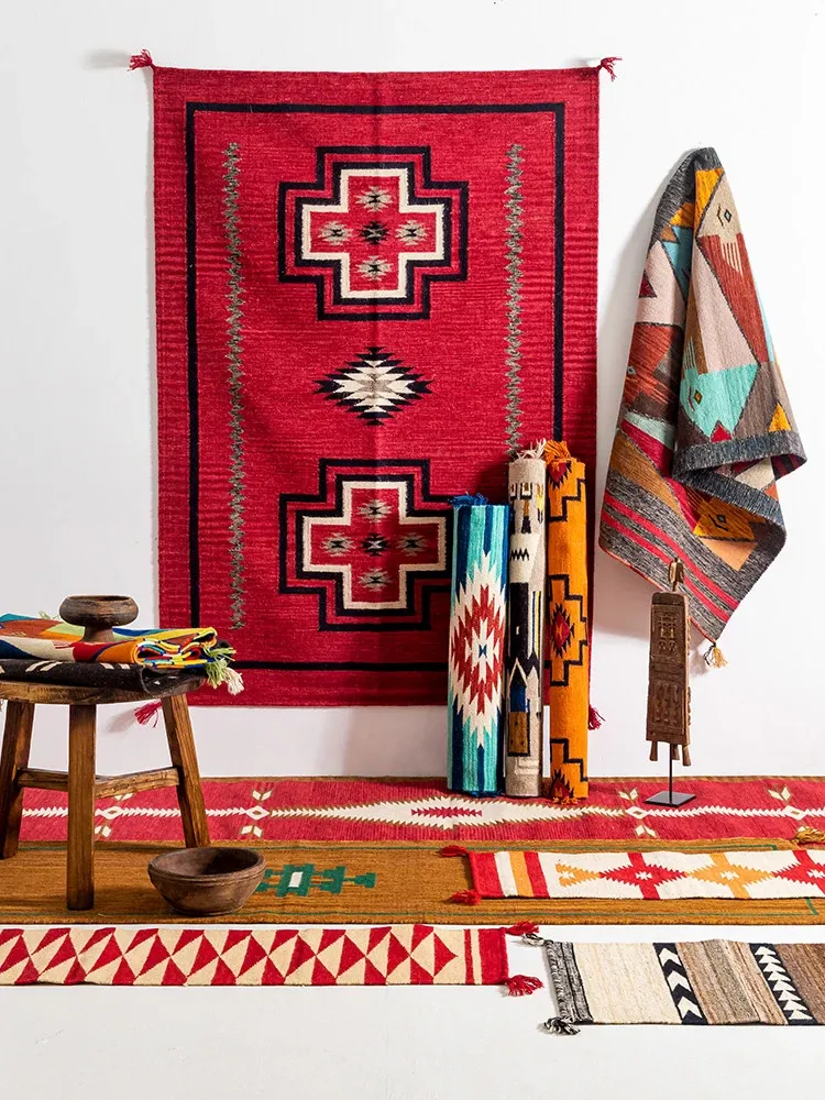 Visual Flavor: Imported Handmade No Glue Wool Red Kilim Rug - Bohemian Style for Living Room and Bedside Décor