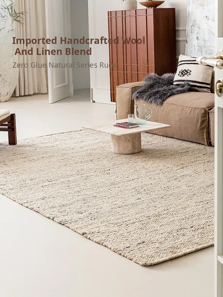 Visual Taste Handmade Wool Carpet - Glue-Free, Formaldehyde-Free, Minimalist Wabi-Sabi Style Area Rug for Living Room and Bedroom, Perfect for Bedside Décor