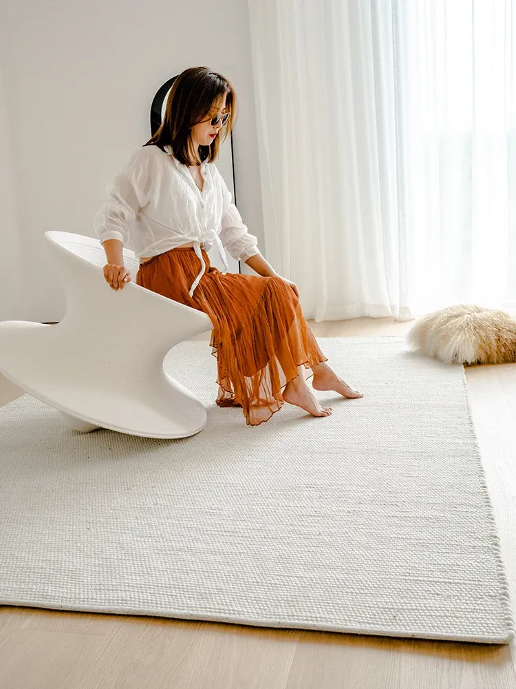 Modern Handmade White Wool Carpet - Japanese Style, No Glue, Creamy Aesthetic for Living Room & Bedroom, Perfect for Cozy Bedside Decor