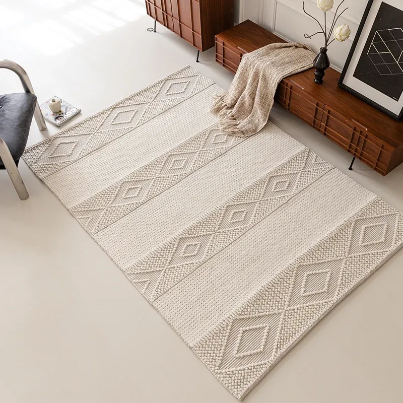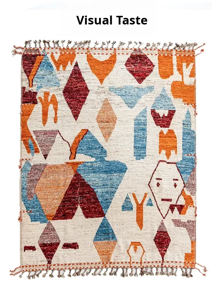 Visual Taste: Imported Wabi-Sabi Style Handwoven Wool Rug - Minimalist Glue-Free Afghan Carpet for Chic Living Rooms