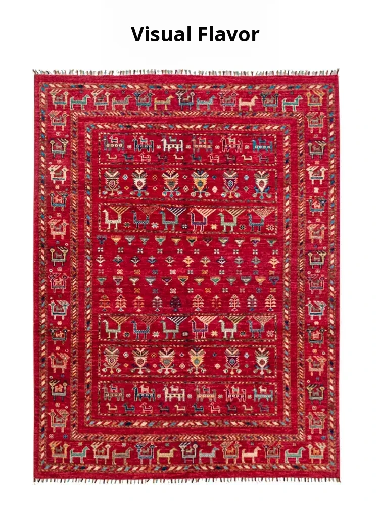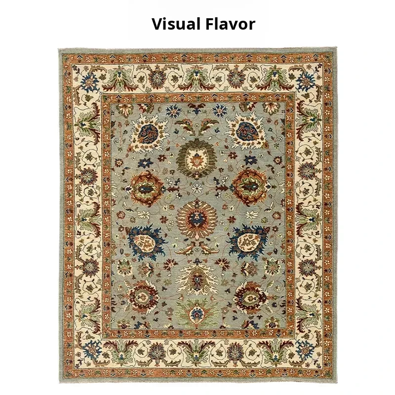 Visual Flavor Imported Handcrafted Wool and Silk Carpet - Nordic Vintage Style for Living Room, Bedroom, and Ins-Inspired Bedside Mat