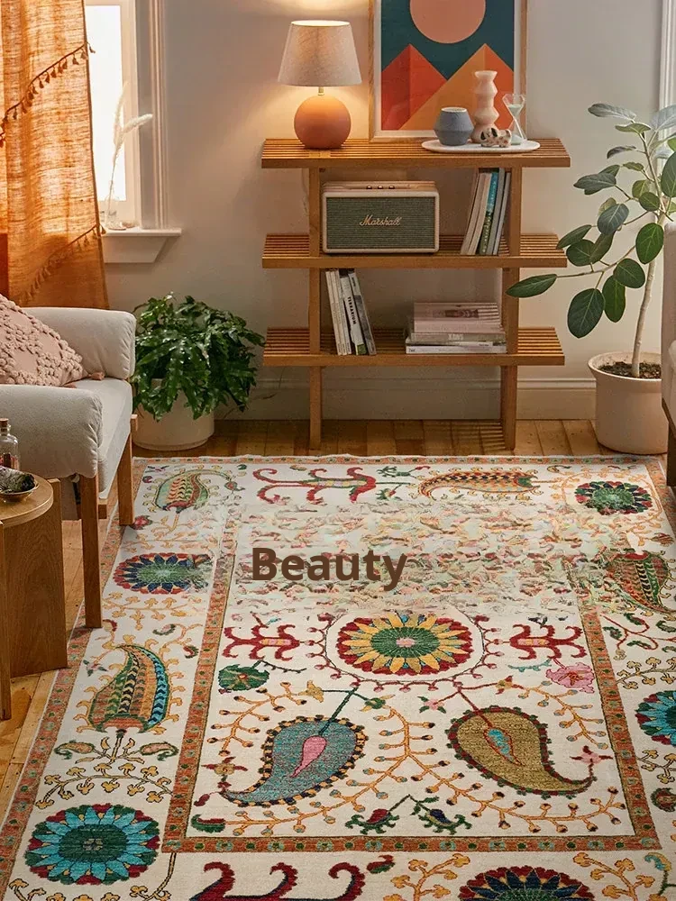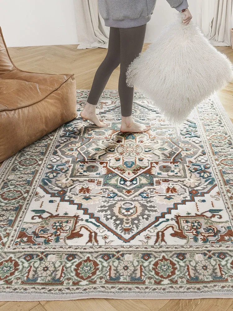 Modern Luxurious American Minimalist Carpet with Vintage Floral Design for Living Room and Bedroom - Perfect for INS Aesthetic Bedside Decor