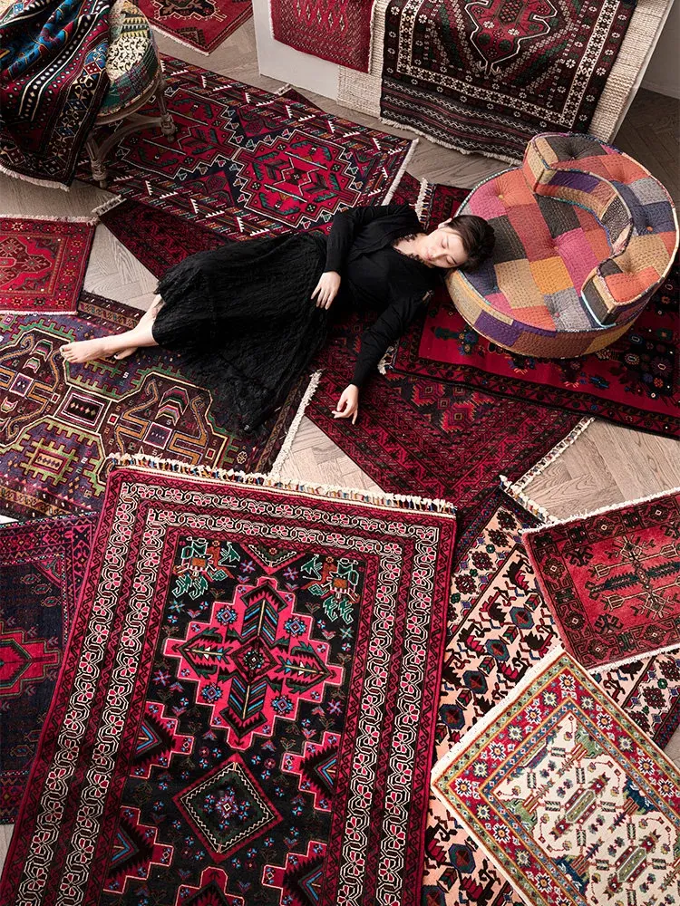 Imported Handmade Wool Door Mat - Luxury Ethnic Vintage Carpet for Entryway and Bedroom - Stylish Ins Inspired Area Rug