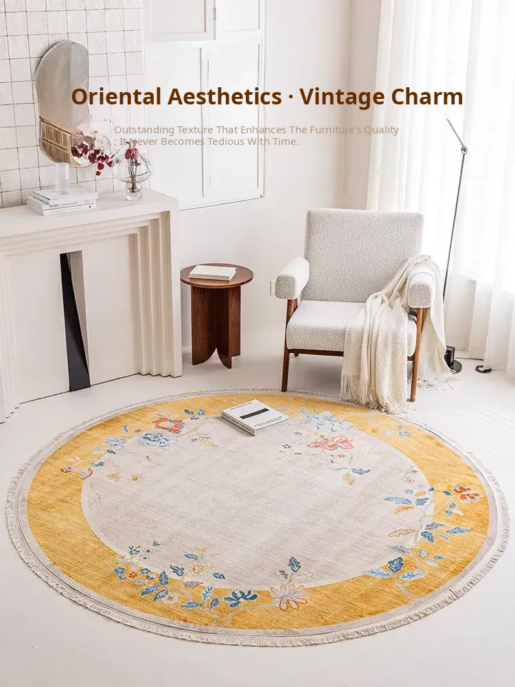 Visual Taste: Round Vintage Style Carpet for New Chinese Living Room, Perfect for Tea Tables and Chairs, Ideal Mat for Hallways, Bedrooms, and Bedside Use.