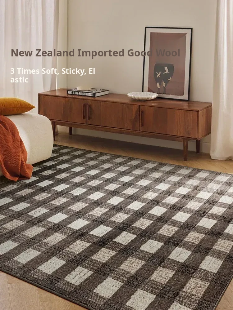 Vintage Caramel Check Wool Area Rug - Aesthetic Comfort for Living Room & Bedroom, Perfect for Home Décor with Premium Quality