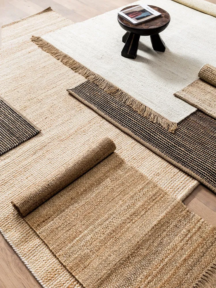 Visual Flavor: Indian Imported New Chinese Jute Wool Handcrafted Area Rug - Perfect for Japanese and American Living Rooms, Ideal for Coffee Table and Floor Decoration