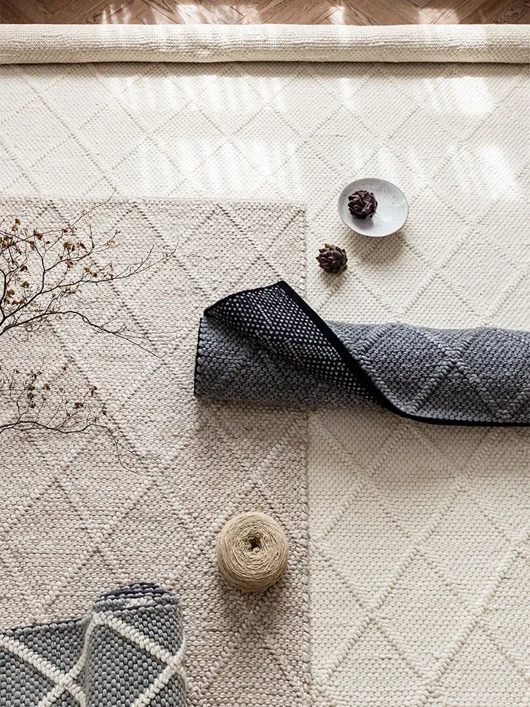 Imported Handmade Wool Rug - Scandinavian Style, Minimalist Design for Living Room, Sofa, Bedroom, and Coffee Table - Modern Elegance in Every Stitch